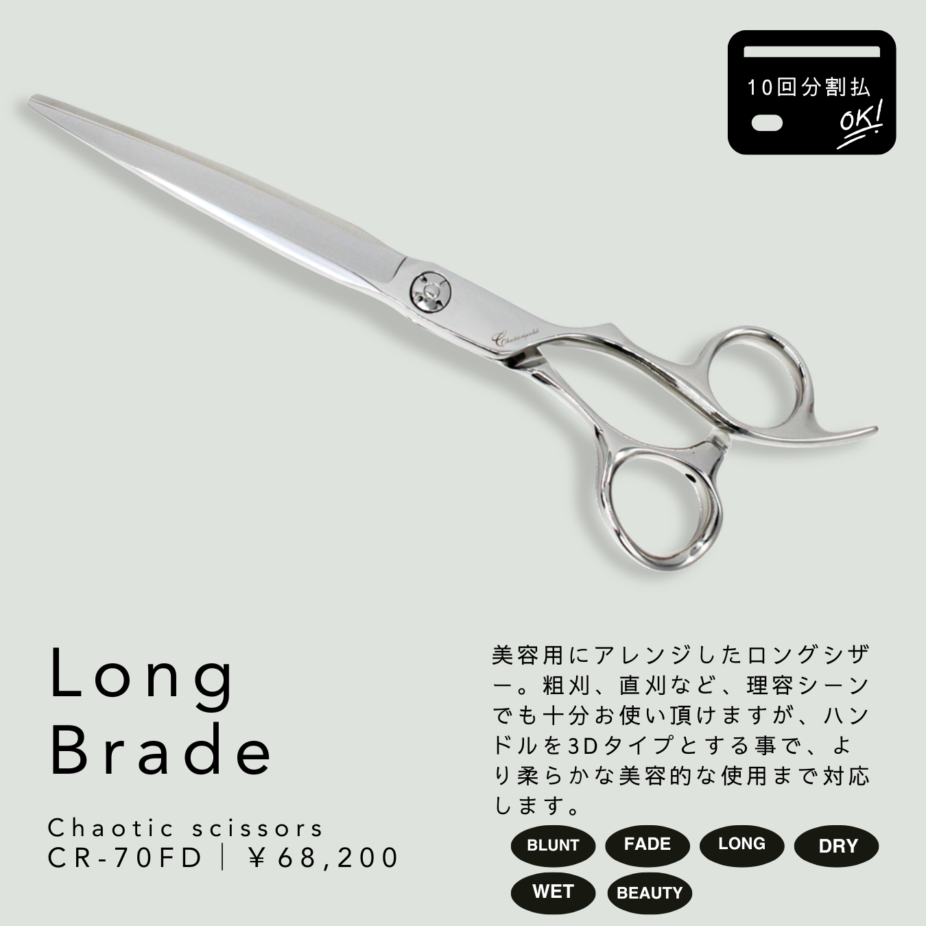 刈り上げやフェードカットなど、面を整える作業に特化した、7インチ以上のロングブレードシザーです。その長い刃部を使うことで、スピーディーでハイクォリティな仕事をサポートします。