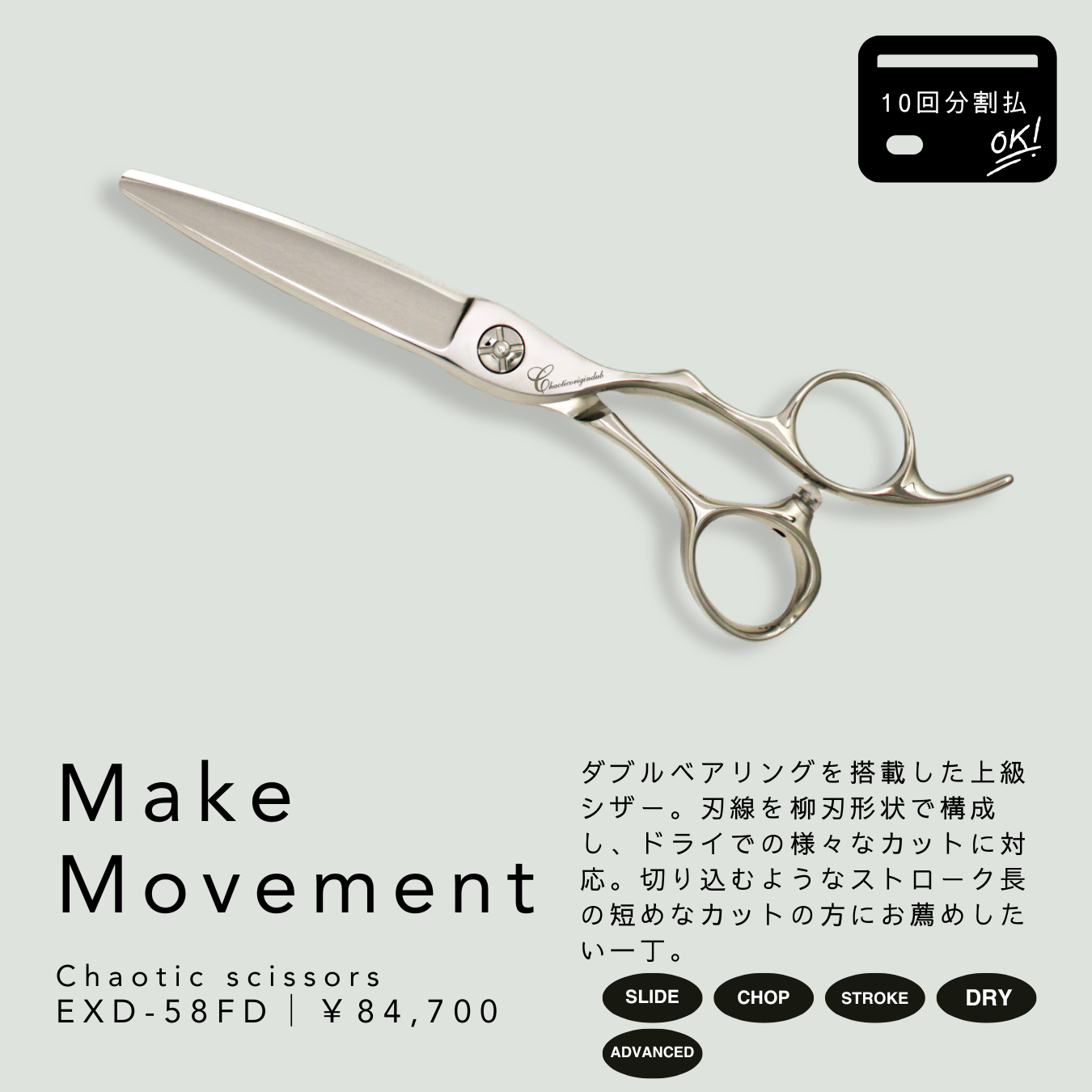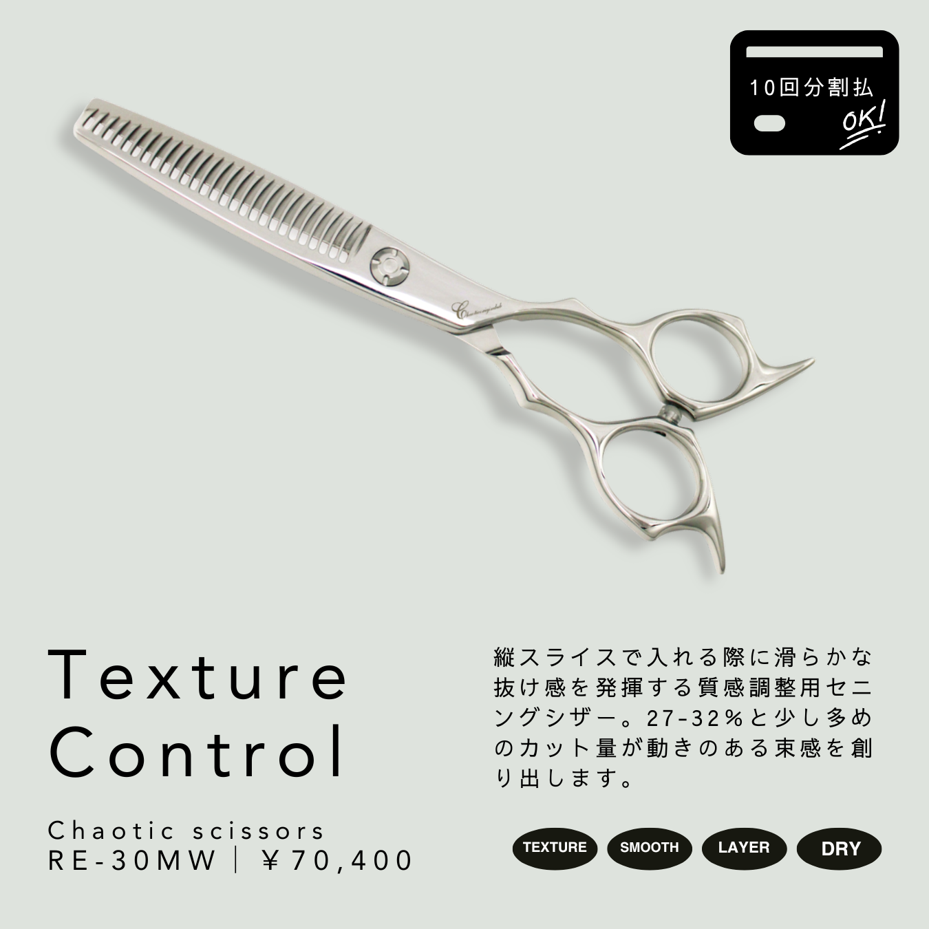 主にドライコンディションでの使用に適し、スライド、ストローク、チョップカットを想定したシザーです。刃線の曲線率などによって効果が異なり、ドライカットの幅が広がります。