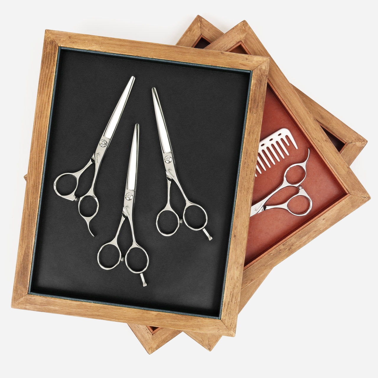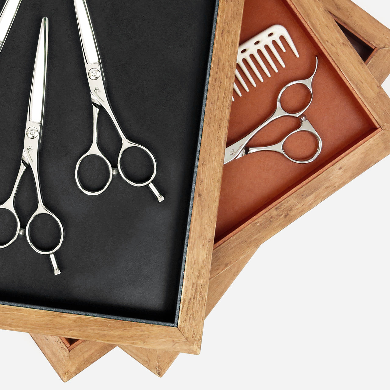 シザーやコームを自由に置いて使用できるワゴン置きに丁度良いサイズのシザートレイ